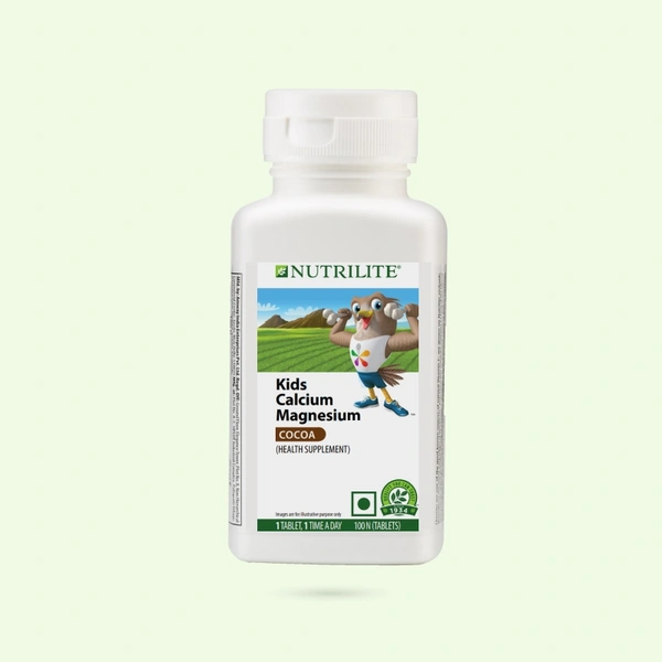 Nutrilite Kids Calcium Magnesium Cocoa comes in a tasty Natural Cocoa flavour and is easy to chew for kids. It contains 270 mg of Calcium and 50 mg of Magnesium.